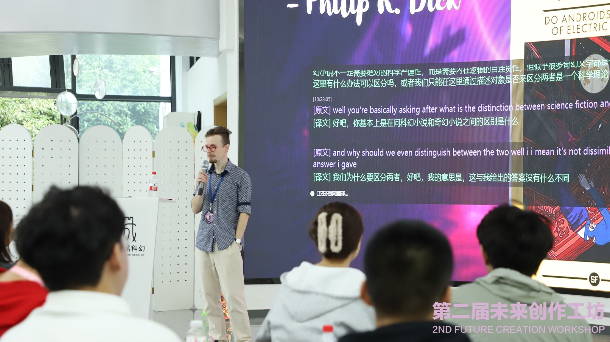 稍作休整,荷兰科幻作家罗德里克・列文哈特(Roderick Leeuwenhart)带来了主题分享,从科幻的历史脉络逐步深入至核心定义,为学员构建起全球化的科幻视野。
