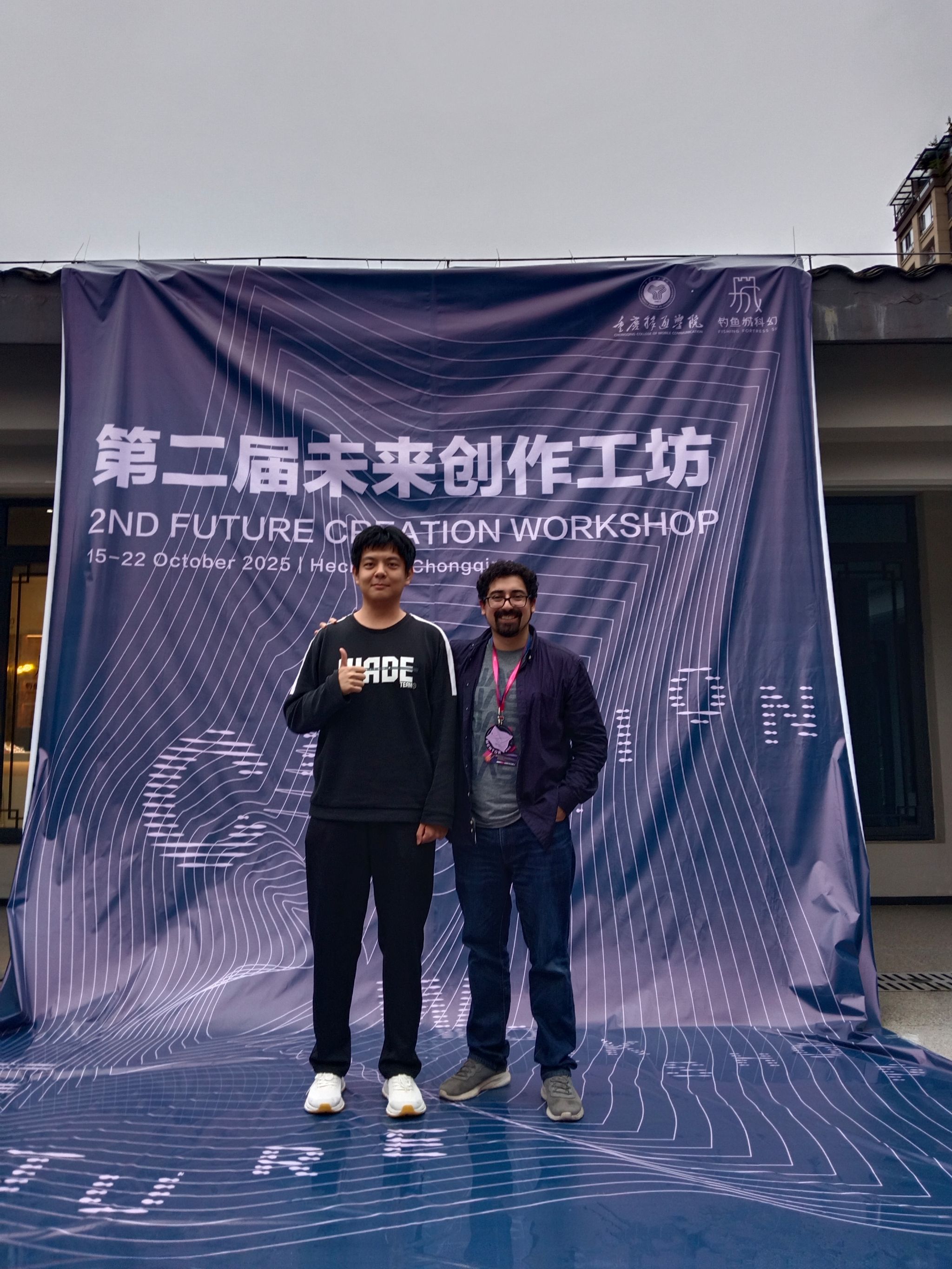 2025 年 10 月 16 日,重庆移通学院 UFO 空间内座无虚席,掌声与思想的碰撞声交织,第二届 “未来创作工坊・国际大师班” 在充满想象力的氛围中开启首日征程。泰山科技学院教师王云轩、学生刘佳豪作为学员参加课程,教师高阳(笔名游者)旁听,共同参与了这场科幻创作的盛宴,从清晨到日暮,沉浸式感受多位中外大师带来的专业洗礼。