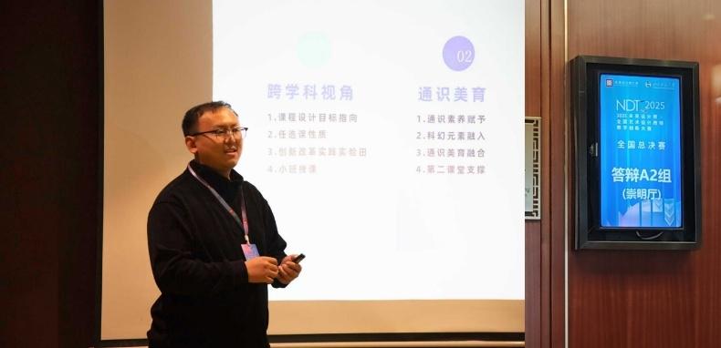 翌周,学院教师陈希以全校任选课程《穿越时空的艺术回廊》进行参赛,本课程曾参与泰山科技学院课堂教学改革创新校级项目,参加过程性考核课堂教学改革示范课评比,本课程作为蓬莱科幻学院科幻课程体系中的创新课程提升学生的通识素养,通过动态考核机制的设计与实施,激发学生的想象力与创新思维,培养其未来观与批判性思维。科幻+艺术教育作为一种独特的文化现象,以其新奇性、可能性逻辑推测等特质,为通识教育提供了全新的视角与工具。本课程的创新体现了蓬莱科幻学院“科幻+通识+艺术”的创新教学理念,将创新作为教育活力的源泉,将创新作为教师发展的目标。
