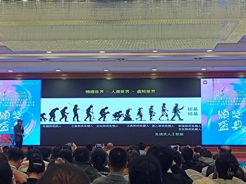 在当今人工智能浪潮下,大学生作为新一代“AI原住民”,早已与这项技术深度共生——AI不再是遥远的科技概念,而是已悄然渗透到“衣、食、住、行”中。我作为本次的学生代表前往成都参与第13届未来设计教育论坛暨未来设计师大赛颁奖典礼,其中院长圆桌论坛“素养与赋能:未来设计师的核心竞争力”上,葛俊杰院长犀利的指出“提高竞争力的最终目的就是为了提高就业,我们应该提高自身素养,剩下的就交给AI去完成吧。”对我影响颇深,义乌中国⼩商品城创意设计发展服务有限公司副总经理王佐龙也在会议上提出:“现代许多年轻的创作者喜欢炫技,而不在乎消费者真正喜欢什么。”未来的问题不应该是怕AI抢了饭碗,侧重点创作是丢了“人”的温度。能让设计活起来的,从来不是代码,而是人对生活的关注。