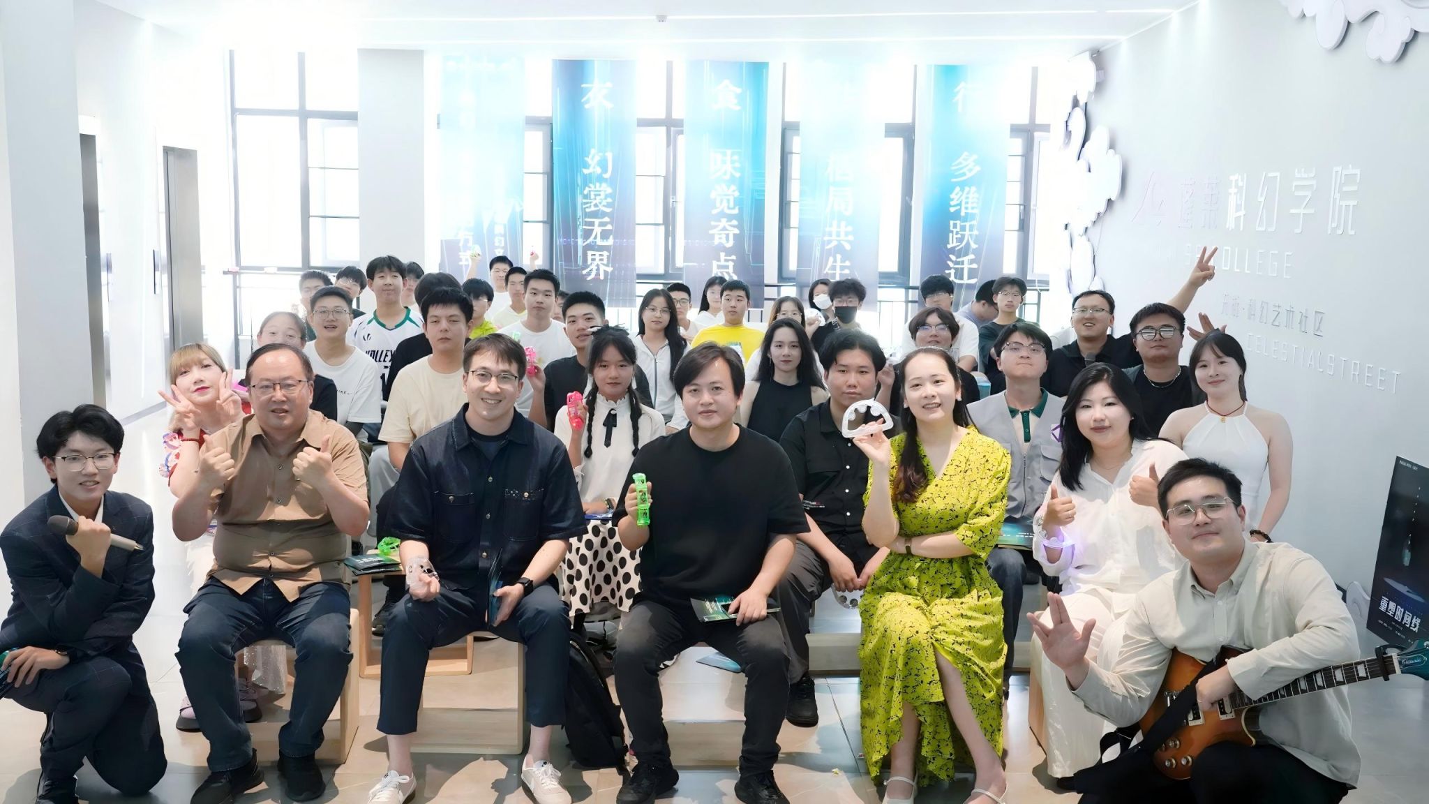 开幕式化身一场通向2150年的“时空导览”。在充满科幻感的星际音效环绕下,蓬莱科幻学院精心策划的学院一师一品项目工坊学期成果轮番登场,完美诠释了学院“一工坊一特色,一作品一世界”的培育理念。