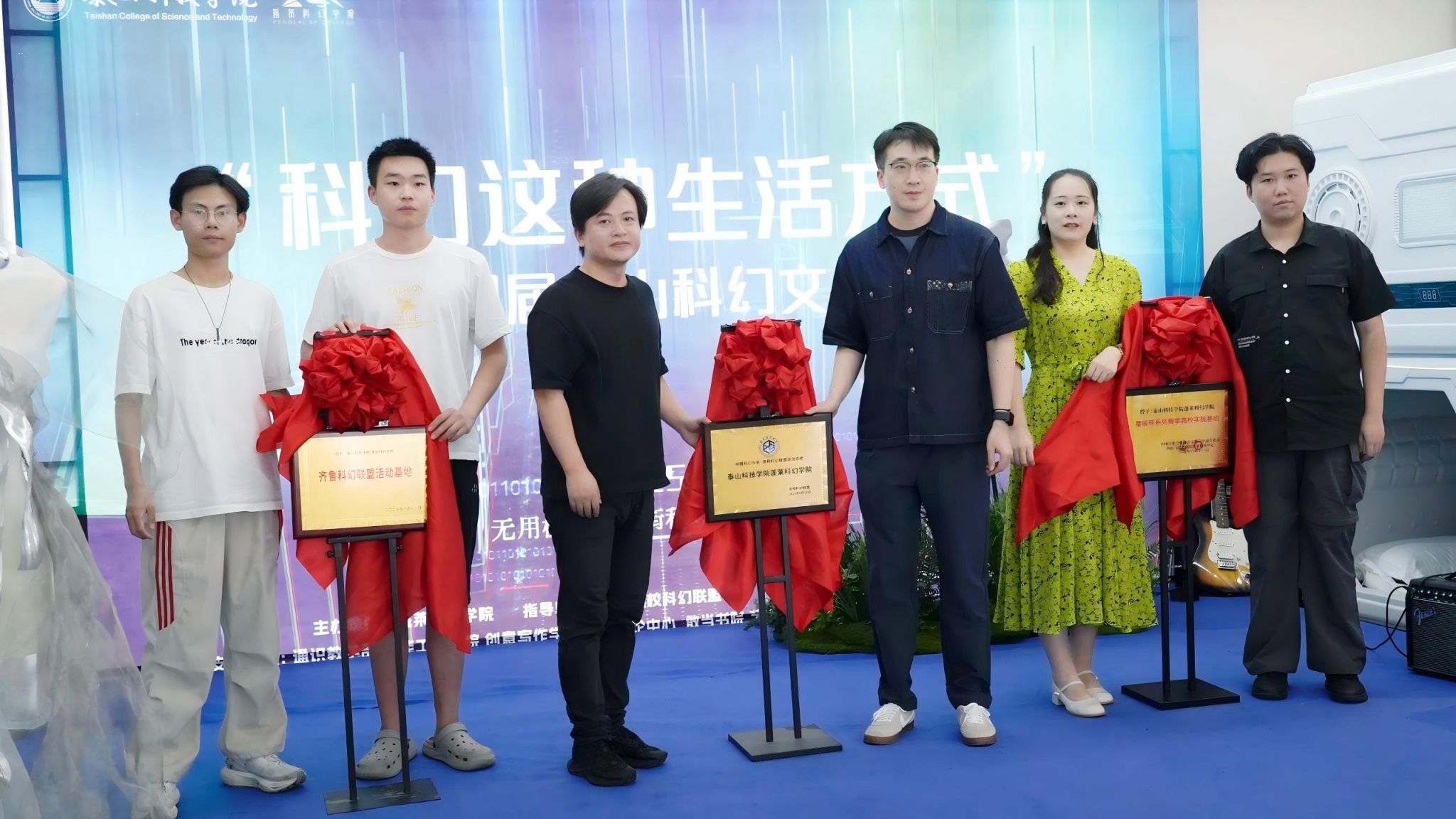 开幕式迎来重磅时刻——高校科幻联盟成员单位、齐鲁科幻联盟高校活动基地、星辰杯系列赛事高校实践基地三方正式落户泰山科技学院!中山大学中文系创意写作教研室主任、广州市作家协会副主席王威廉老师,北京理工大学助理教授、高校科幻联盟副秘书长曲楠老师,蓬莱科幻学院副院长宋亚洁,蓬莱科幻学院作家教师、星辰杯系列赛事创始人史雨昂老师,山东财经大学星域科幻协会创会会长、齐鲁科幻联盟负责人王孜轩同学,青岛电影学院科幻协会会长张源同学出席为高校科幻联盟成员单位、齐鲁科幻联盟高校活动基地、星辰杯系列赛事高校实践基地授牌的仪式。这将成为泰科科幻爱好者交流创意、孵化梦想、推动校园科幻文化蓬勃生长的核心阵地。