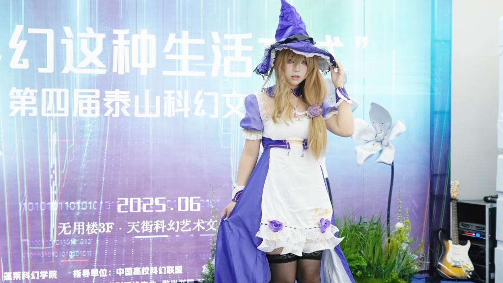 开幕式最后,随着科幻知名乐队带来激情澎湃的歌曲《Viva La Vida》,主持人宣告:“此刻即未来!”第四届泰山科幻文化周正式进入高潮。蓬莱科幻学院艺术老师陈希随后介绍了贯穿整个文化周的 “世界的生命树”科幻艺术联展(包含“枝衍万象·一师一品牌”“叶舞共生·一人一宇宙”“根脉无垠·一梦一未来”三大主题展区,分布于蓬莱朋友圈、敢当书院及云海展厅),邀请师生持续探索科幻艺术之美。