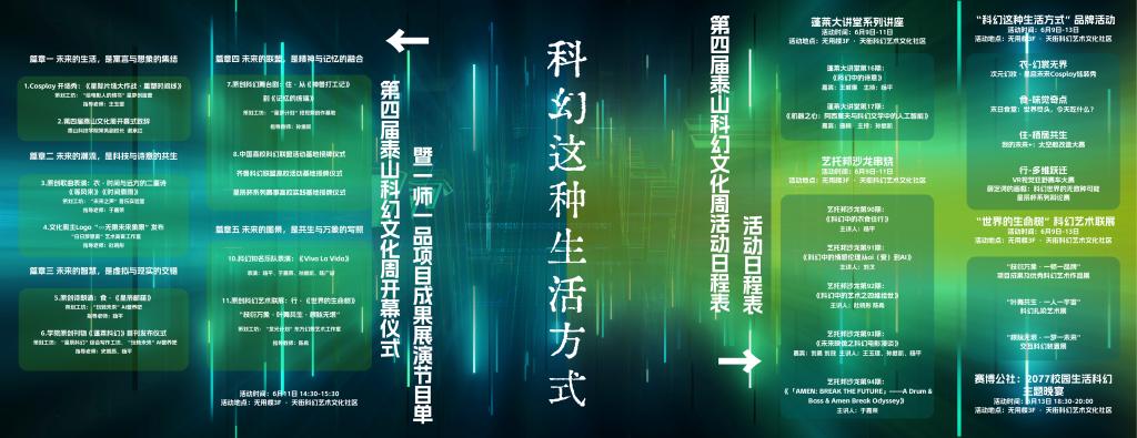 6月11日下午,一场充满未来奇想的时空之旅在泰山科技学院正式启程。由蓬莱科幻学院倾力打造的“科幻,这种生活方式”第四届泰山科幻文化周开幕式暨一师一品项目成果展演在无用楼3F云海展厅震撼开启。文学博士、中山大学中文系创意写作教研室主任、广州市作家协会副主席王威廉老师,高校科幻联盟副秘书长、北京理工大学教育学院曲楠老师,齐鲁科幻联盟师生代表,星辰杯辩论赛辩手代表等众多校内外嘉宾与全校科幻爱好者共同见证了这一校园科幻盛事的揭幕。