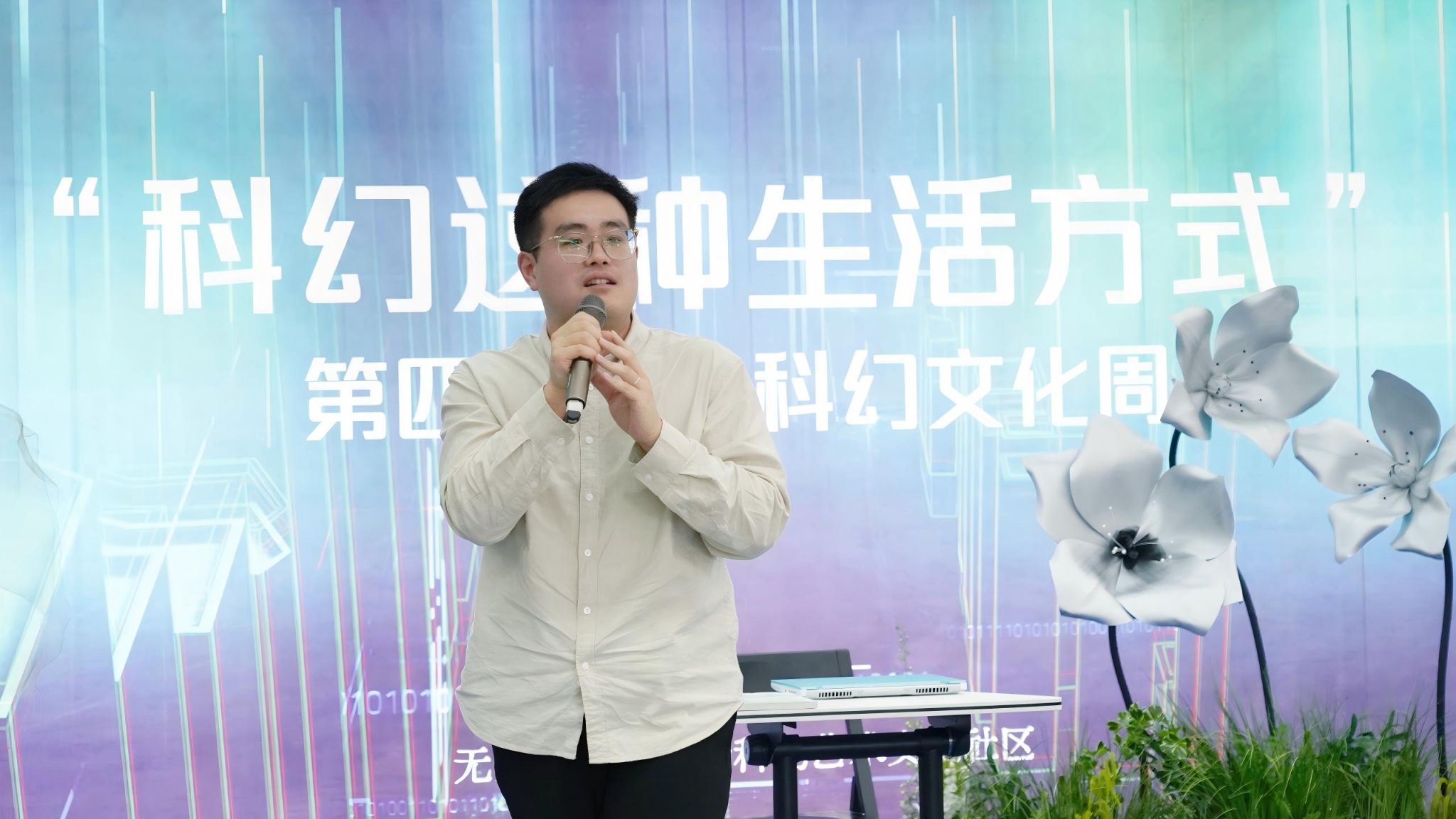 泰山科技学院常务副校长谢承红老师为开幕式致辞。他强调了蓬莱科幻学院建设的三个关键方向:第一是“最科幻”。蓬莱科幻学院在建设科幻特色课程、打造品牌项目、举办专题活动的过程中,持续输出着科幻的校园影响力。第二是“最生活”。正如本次第四届泰山幻想文化周的主题“科幻,这种生活方式”一样,科幻如今正在全面融入现代社会变革。那些未来的憧憬和想象,正在以想象不到的速度成为现实。第三是“最互动”。学生在学生科幻联合会、项目工坊和学生社团学习创作的过程中与老师与科幻产生着紧密的情感联结。最后,谢校长也预祝本次活动顺利举办,并对本届活动寄予厚望,鼓励师生在科幻洪流中感受创新的脉搏。