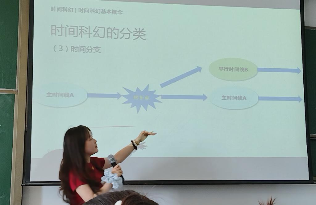 学生们被这个假设吸引,开始了对因果律、蝴蝶效应以及历史必然性的思考。刘戈老师进一步阐释,时间科幻的魅力不仅在于技术的奇观,更在于它对自由意志、宿命论以及人类在时间长河中位置的深刻叩问。