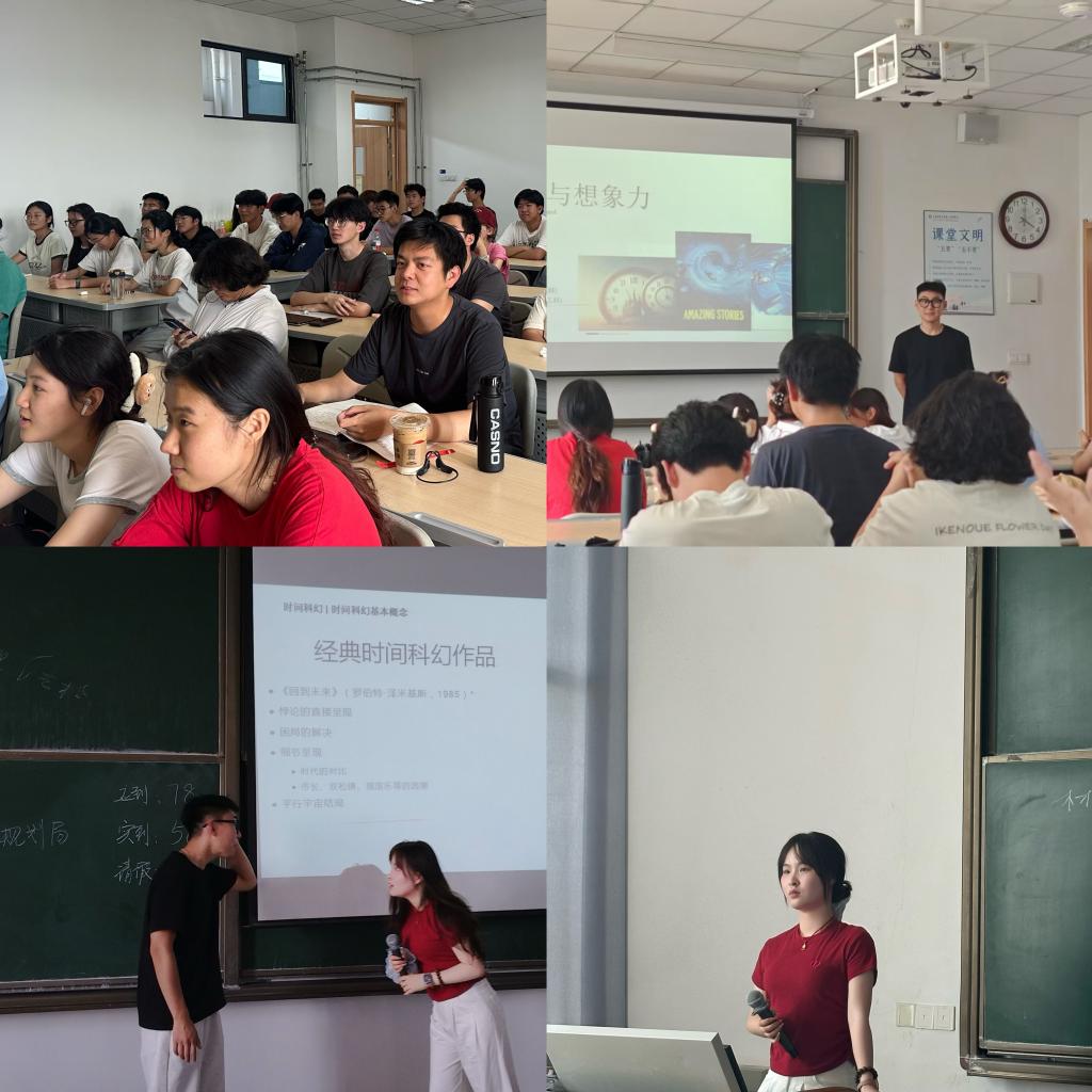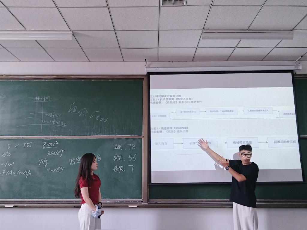 6月5日,J1-503教室化身为一个奇妙的“时空实验室”,蓬莱科幻学院刘戈老师与智能工程学院郑杜彬老师,以双师协同模式共同教授了《科幻与想象力》课程中“时间科幻”章节。