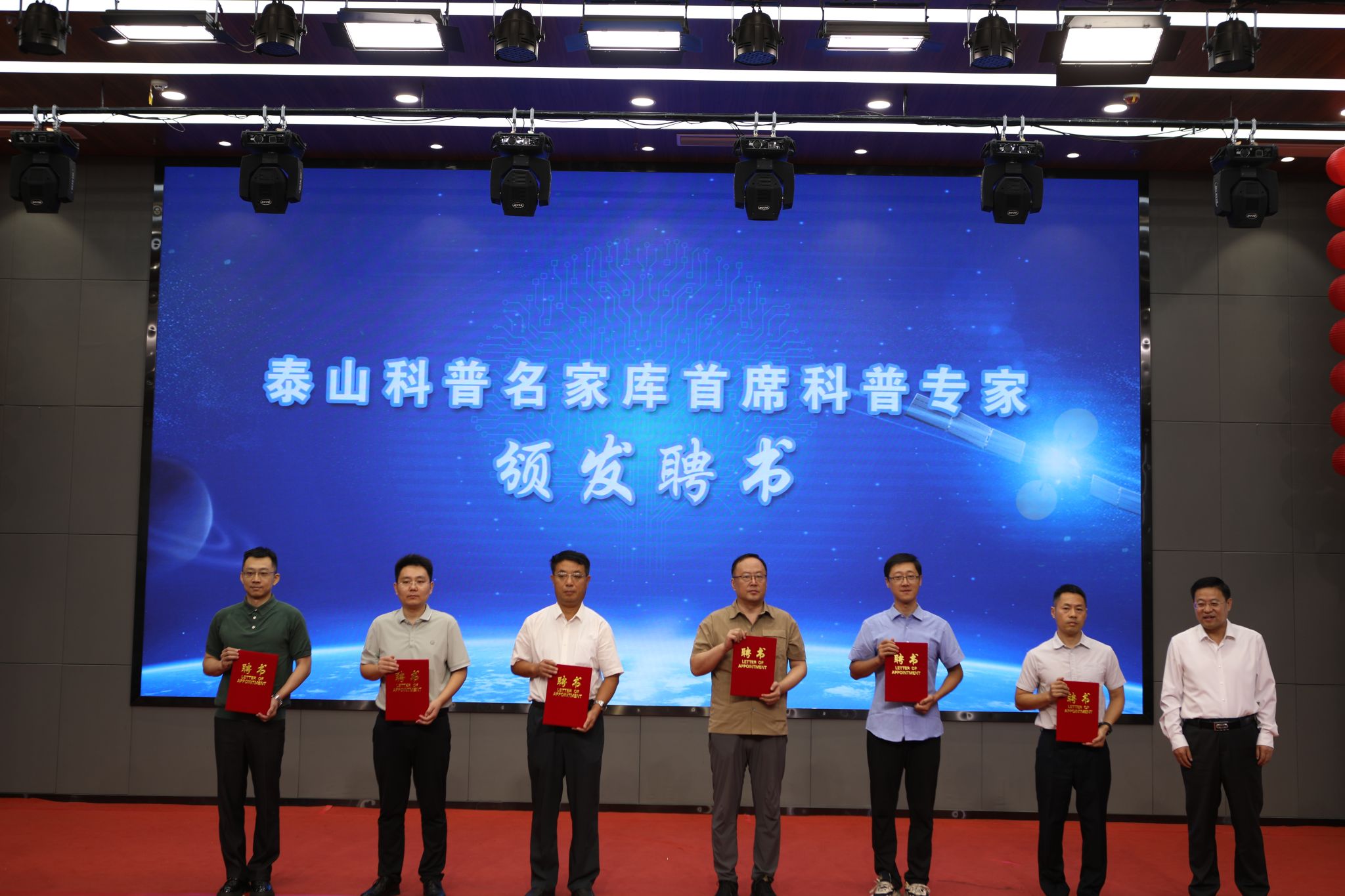 山东省科协党组成员、副主席夏庆刚,泰安市委副书记、政法委书记马广峰,泰山区委副书记、市汶河新区党工委书记、管委会主任贾夫军出席活动并讲话。各联合主办单位及特邀单位、市级学会、高校企业、科协有关负责同志,泰山区全民科学素质工作责任单位及乡镇(街道)相关负责同志,获奖代表、科普专家、科普志愿者以及社区群众代表等300余人参加活动。在仪式上,共有6位专家获得“泰山科普名家库”首席科普专家聘书。