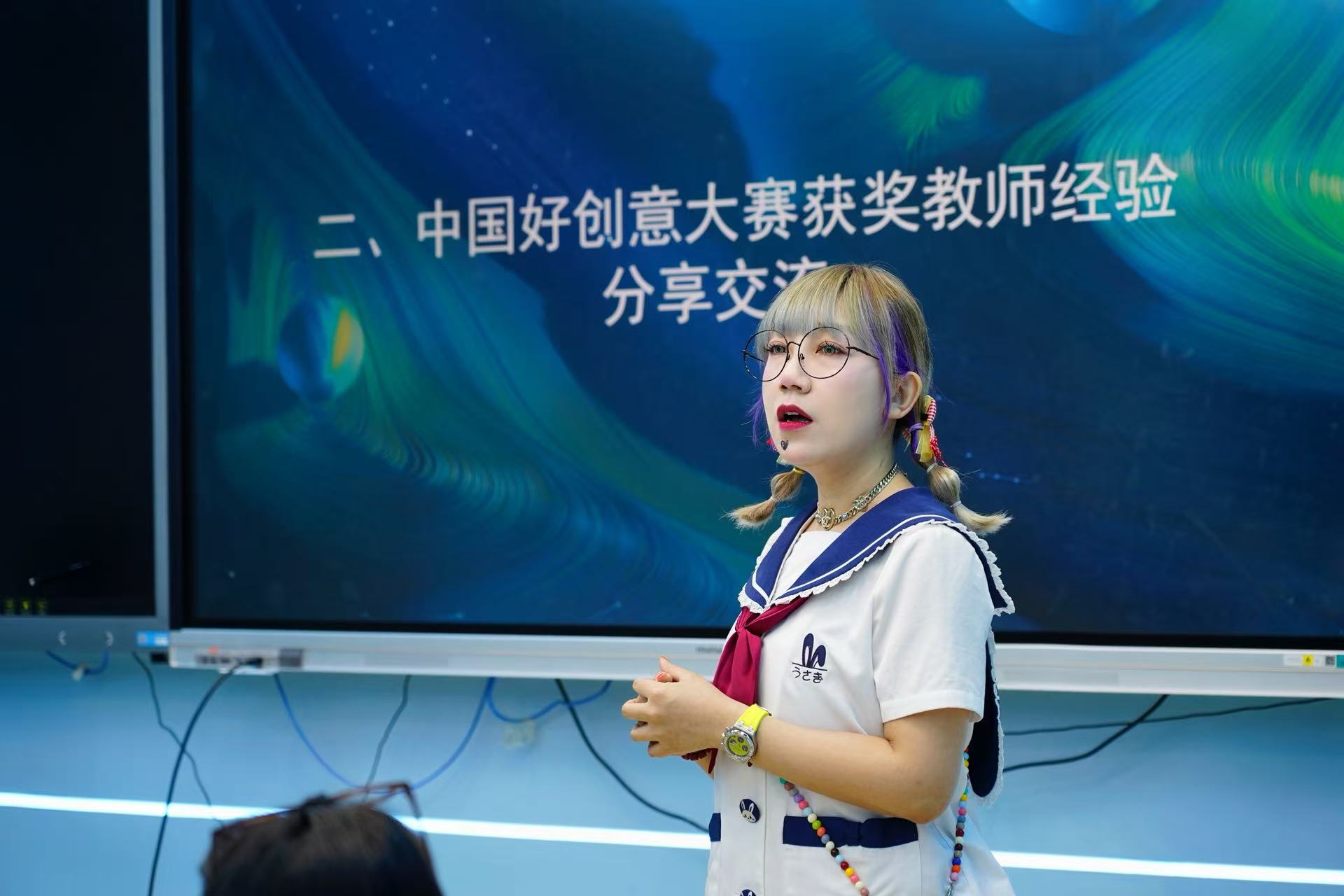 随后,获得中国好创意大赛奖项的孙继凯老师与王玉琨老师进行经验分享。作为一名专注于电影与科幻教学的教师,孙继凯老师始终以自身热情点燃学生动力。在此次中国好创意大赛备赛过程中,他先分享自己过往的参赛获奖经历,充分激发学生兴趣,指导学生成立创作小组,进行影视前沿案例拉片分析,确定了至少创作一部科幻作品去参赛的目标。在对学生指导过程中,孙继凯老师注重对学生从0到1的系统培养,初期组织科幻主题头脑风暴,引导学生挖掘独特创意,让零基础学生逐步成长为创作主力。