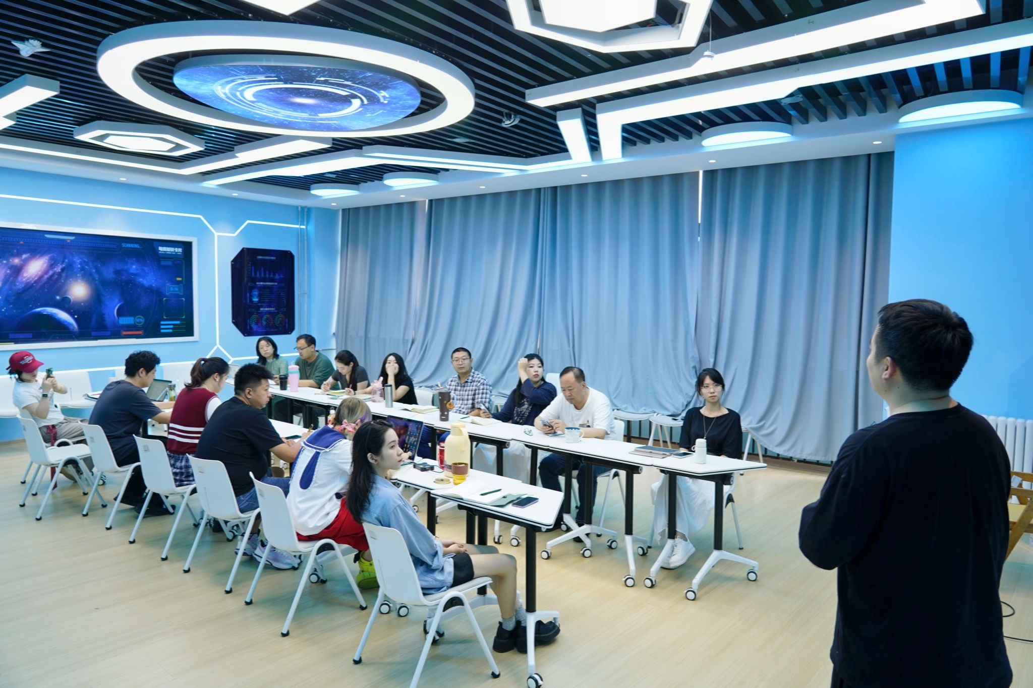 随后,薛瀛老师汇报了空间建设的方案与后续计划,从空间布置到设施配备进行了全方位的介绍,并号召老师们集思广益。该空间的建设旨在为学院发展注入新的动力,并将其建设成科幻与剧本杀教育的全新平台。