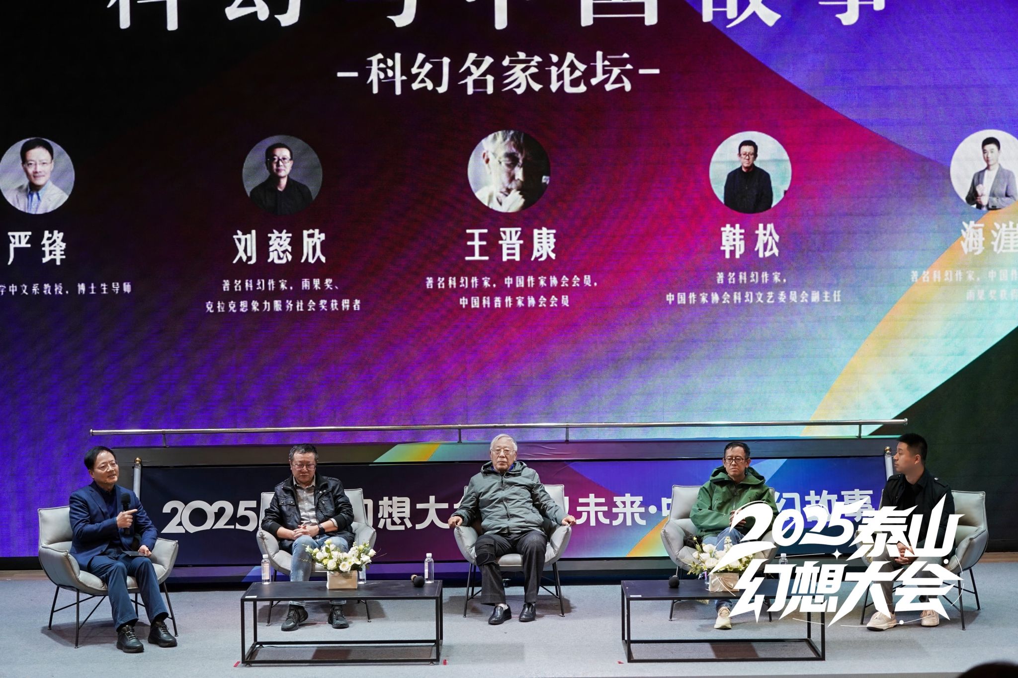 在复旦大学中文系教授严锋主持的论坛中,刘慈欣、王晋康、韩松、海漄就“科幻与中国故事”主题展开深入对话。刘慈欣坦言,科幻创作从无放之四海的“通用密码”,中国科幻若想重拾澎湃活力,便需将目光投向更辽远的时空维度,在人类文化的共通语境中寻找共鸣。王晋康强调科幻创作植根于全人类共通的科学体系,中国科幻应借助民族向上发展的气势,把握世界科技强国转移的趋势,发出中国科幻声音。
