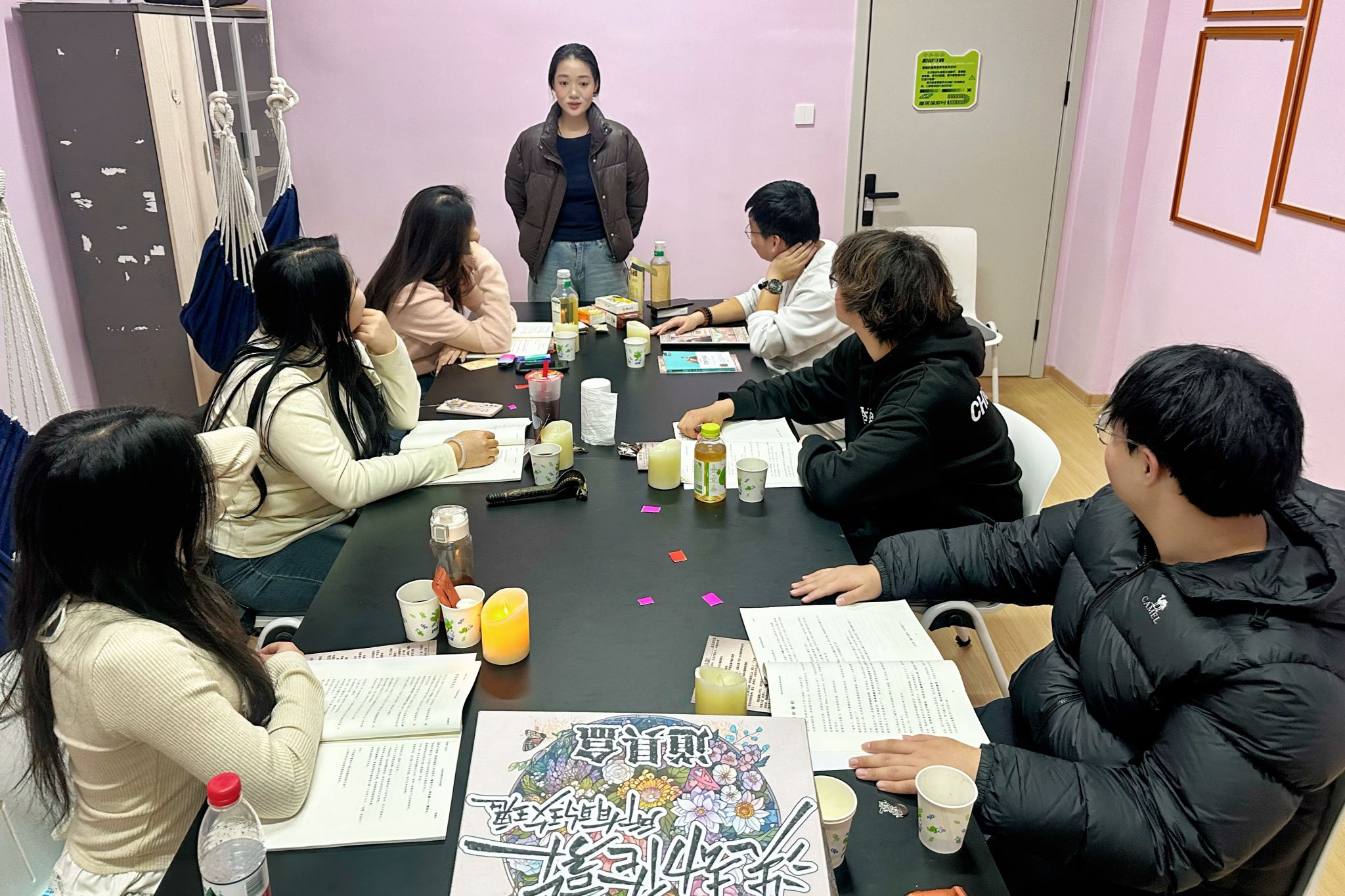 第4期活动,紧锣密鼓地开展12月24日在敢当207,主题转向厚重而热血的《永不褪色的山楂林》。本期重点并非完整推演,而是侧重于剧本的“选角”与“测车”环节。孙豪浩老师带领同学们深度剖析剧本时代背景与角色人物小传,指导大家如何通过朗读、独白和情境模拟,迅速捕捉并外化角色特质——尤其是那种在战火纷飞中依然坚毅、含蓄而充满信念感的复杂状态。