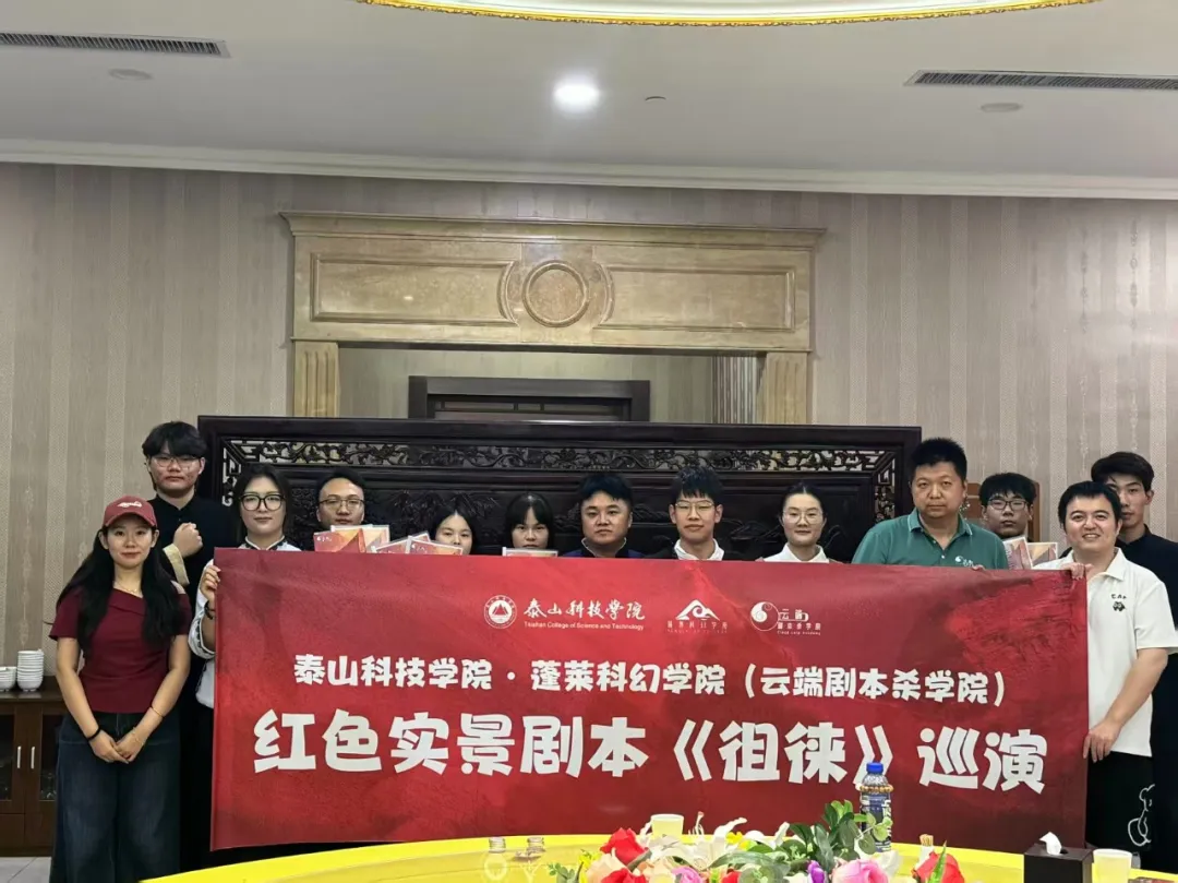 7 月 16 日,学院师生代表在齐河泉城欧乐堡主题公园成功演出原创大型红色实景剧本杀《徂徕》。学院教师基于徂徕山红色革命历史,创编大型红色实景剧本杀《徂徕》,用沉浸式演绎让参与者身临其境,体悟到剧本游戏的独特魅力,通过创新方式重现革命历史事件,将思政教育融入剧本游戏。本次活动是剧本杀教育社会实践的重要尝试,为后续开展更多富有创意与实效的思政教育实践活动积累了宝贵经验。