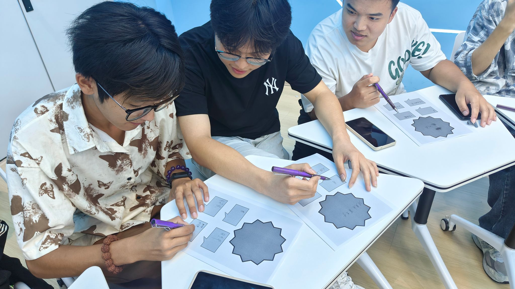 学院的老师们也全身心投入到游戏环节中,参与猜人游戏,并向学生们介绍了自己的研究方向以及学院内的特色工坊。