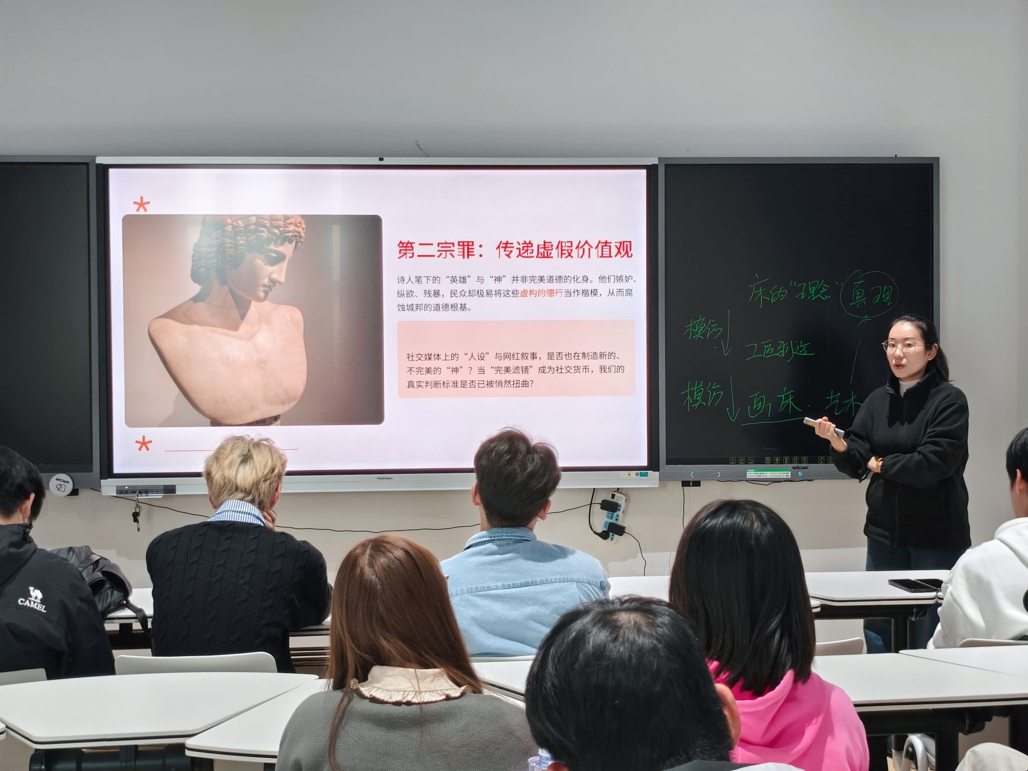 11月14日,彭悦老师在无用楼310房间接续思想热潮,以“《理想国》中的艺术批判——为何柏拉图要驱逐诗人”为题,带领35位同学聚焦柏拉图的艺术观。活动以“艺术是毒药吗?”这一尖锐问题切入,彭悦老师系统解析了柏拉图对艺术的三大批判:“激发非理性情绪”、“传递虚假价值观”、“威胁社会秩序”。为让思辨更具现实意义,老师结合AI生成诗歌、过度修图等当下热点现象,引导同学们展开古今对话。在思想交锋环节,现场氛围尤为热烈,同学们围绕艺术价值与边界各抒己见。彭悦老师在总结中强调,艺术应成为“照见真实的镜子”而非“困住理性的牢笼”,鼓励同学们在享受艺术之美的同时保持理性思考,让这场分享不仅深化了大家对柏拉图哲学的理解,更激发了对信息时代艺术本质的深度反思。