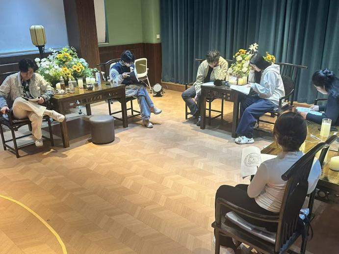 本月参与的同学也纷纷表达了自己的体验。社团云层部副部长杨忆同学在《流氓叙事》结束后感慨:“这个本没有刻意煽情,却在平淡叙事中让人反思社会与人性,后劲很大。”楚褚昭毅在《如故》中体验皇帝这一角色,坦言:“沉浸其中才真正理解了责任与亲情的分量,这种体验比单纯说教更触动内心。” 云峰剧团的周星倩同学则笑称:“在《六角馆》里被‘虐’得头皮发麻,但最后推出来那一刻的成就感,什么都值了!”