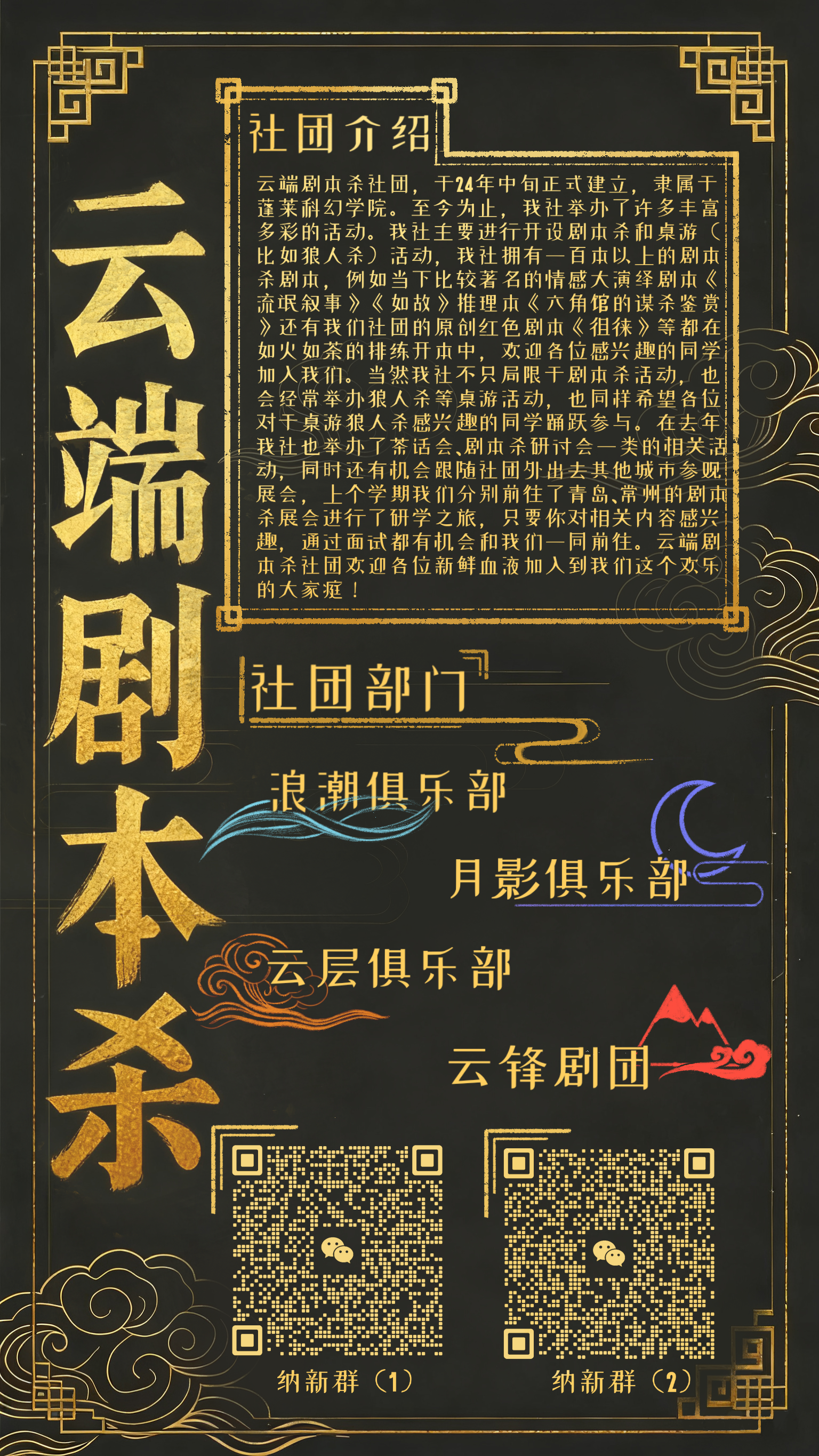 如果你也渴望突破自我、结交挚友,在别样的故事里体验别样人生——云端剧本杀社团,就是你一直在找的“组织”! 无论你是推理高手还是情感玩家,这里都有属于你的舞台。