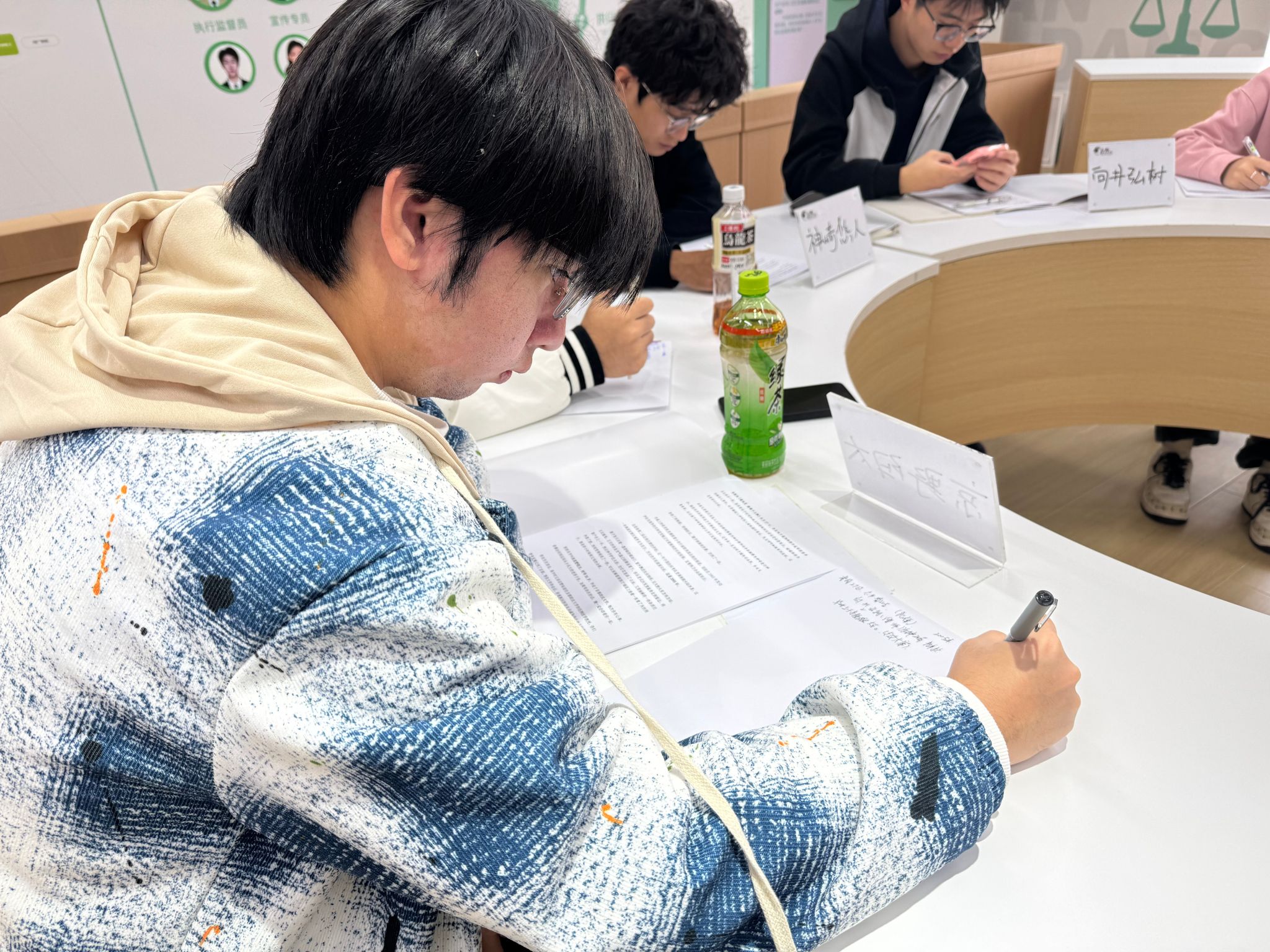 在学生们明确规则与角色故事后,随着“法官”的一声令下,“法庭”内即刻进入紧张的调查与举证环节。控辩双方围绕“神崎悠人”涉嫌案件的核心证据展开激烈交锋。公诉方依据物证与人证步步紧逼,陈述逻辑严密;辩护方则敏锐地捕捉证据链中的细微矛盾,为“被告人”的命运进行有力辩护。现场氛围随之凝固,只余下双方掷地有声的陈词与飞速记录笔记的沙沙声。