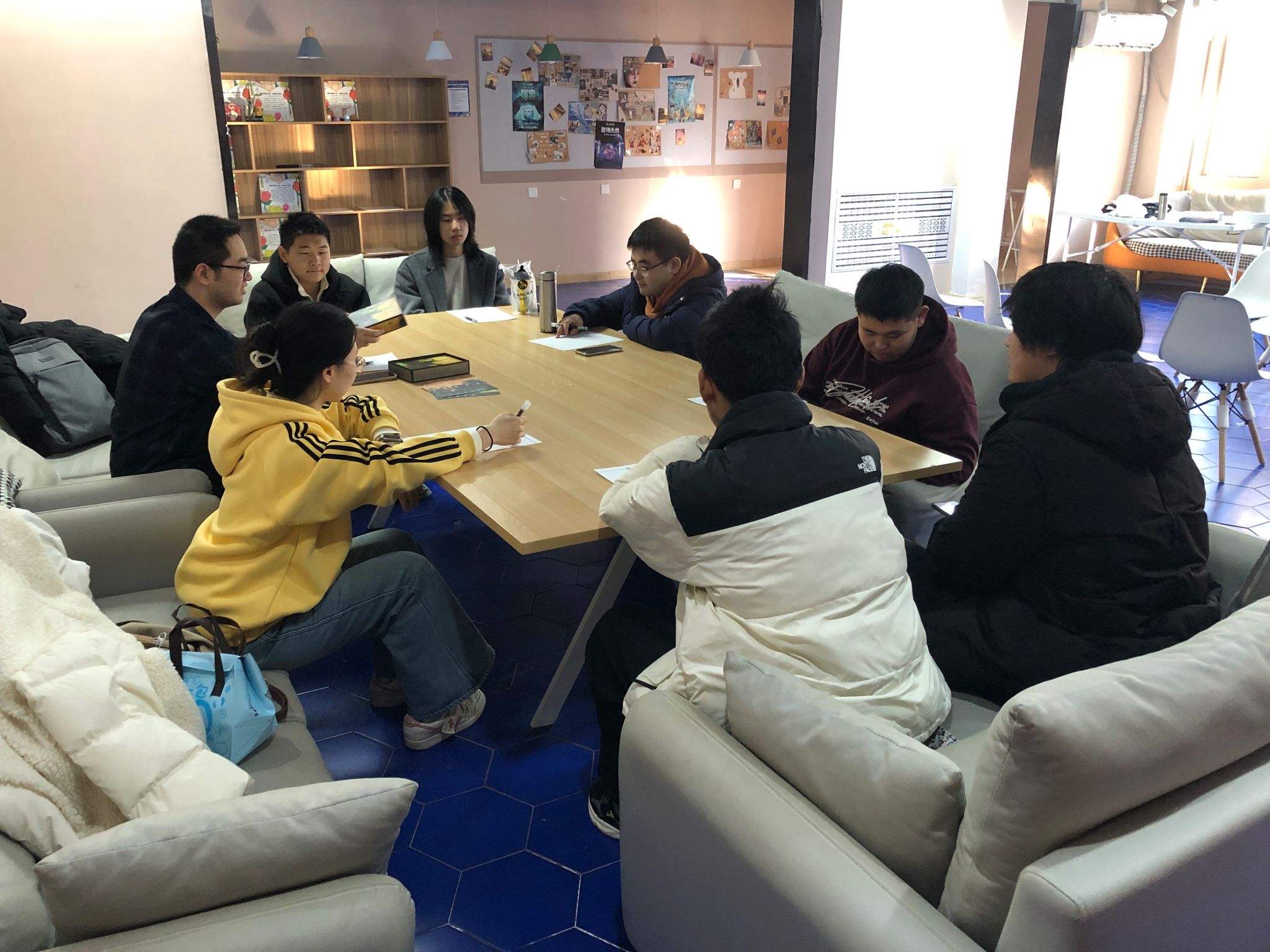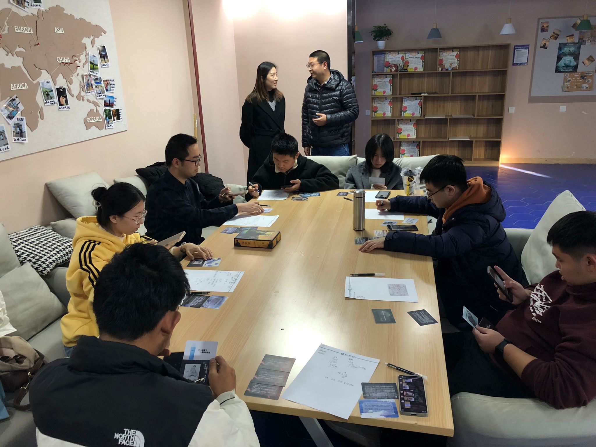 这是一场由蓬莱科幻学院(云端剧本杀学院)教师高丰与双体软件精英产业学院教师赵菁雅一起于11月19日15:00在瞻岩书院无界空间组织的融合活动。寒风吹散枝头的枯叶,师生们在温暖的房间内一同体验变格剧本杀游戏《记忆碎片》。