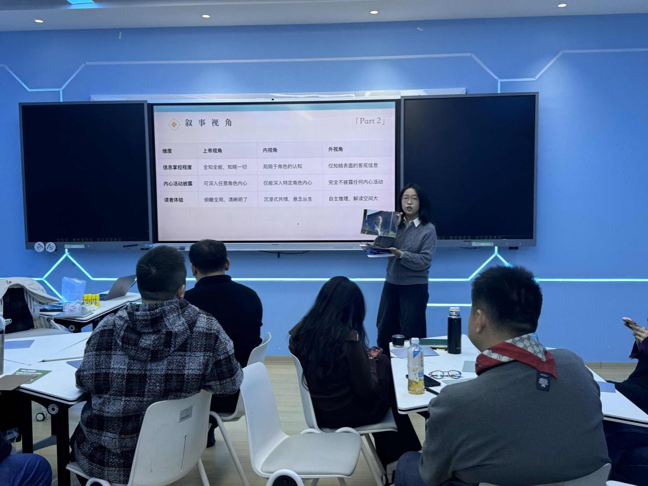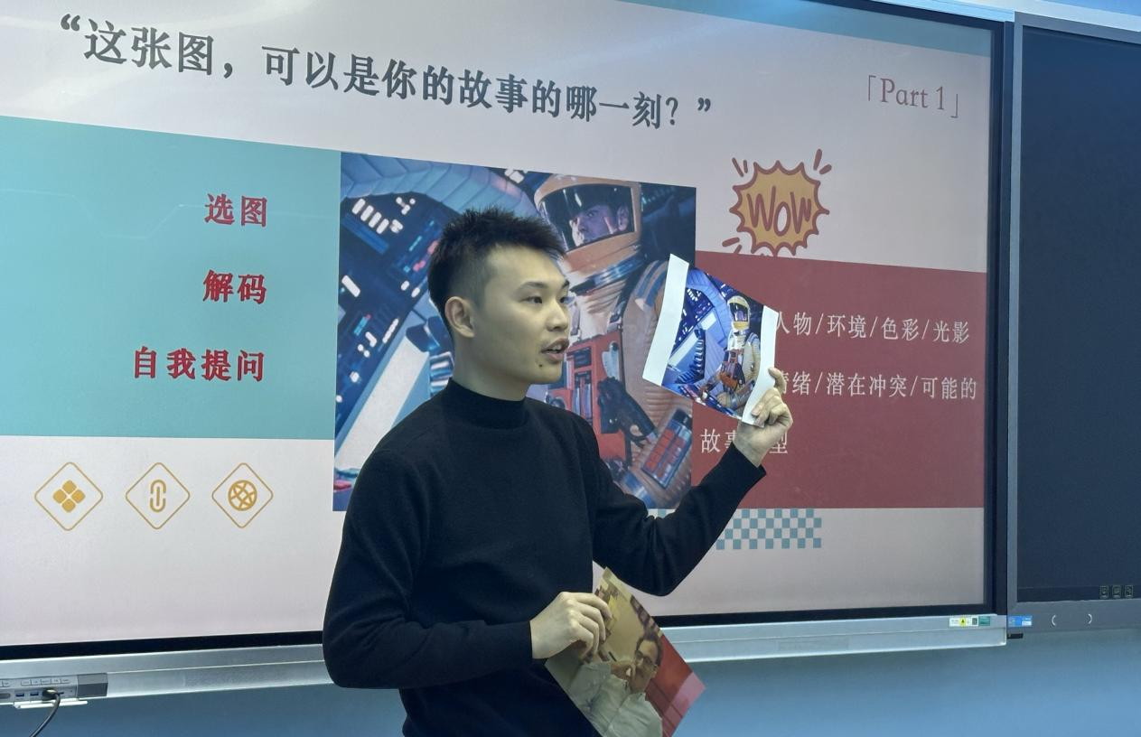 翟秀钰老师在此环节引导学生探索诗歌创作的多元视角,同学们可以选择成为画面中的人物,用第一人称诉说此刻的体验;也可以保持观察者的距离,以第三人称编织叙事的隐喻。重要的是,让画面与词汇之间产生化学反应,而非简单对应。