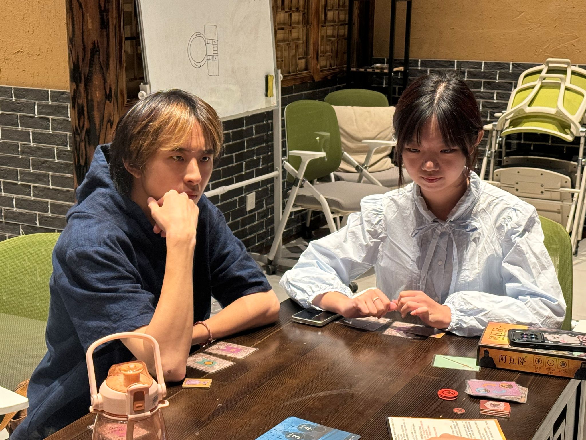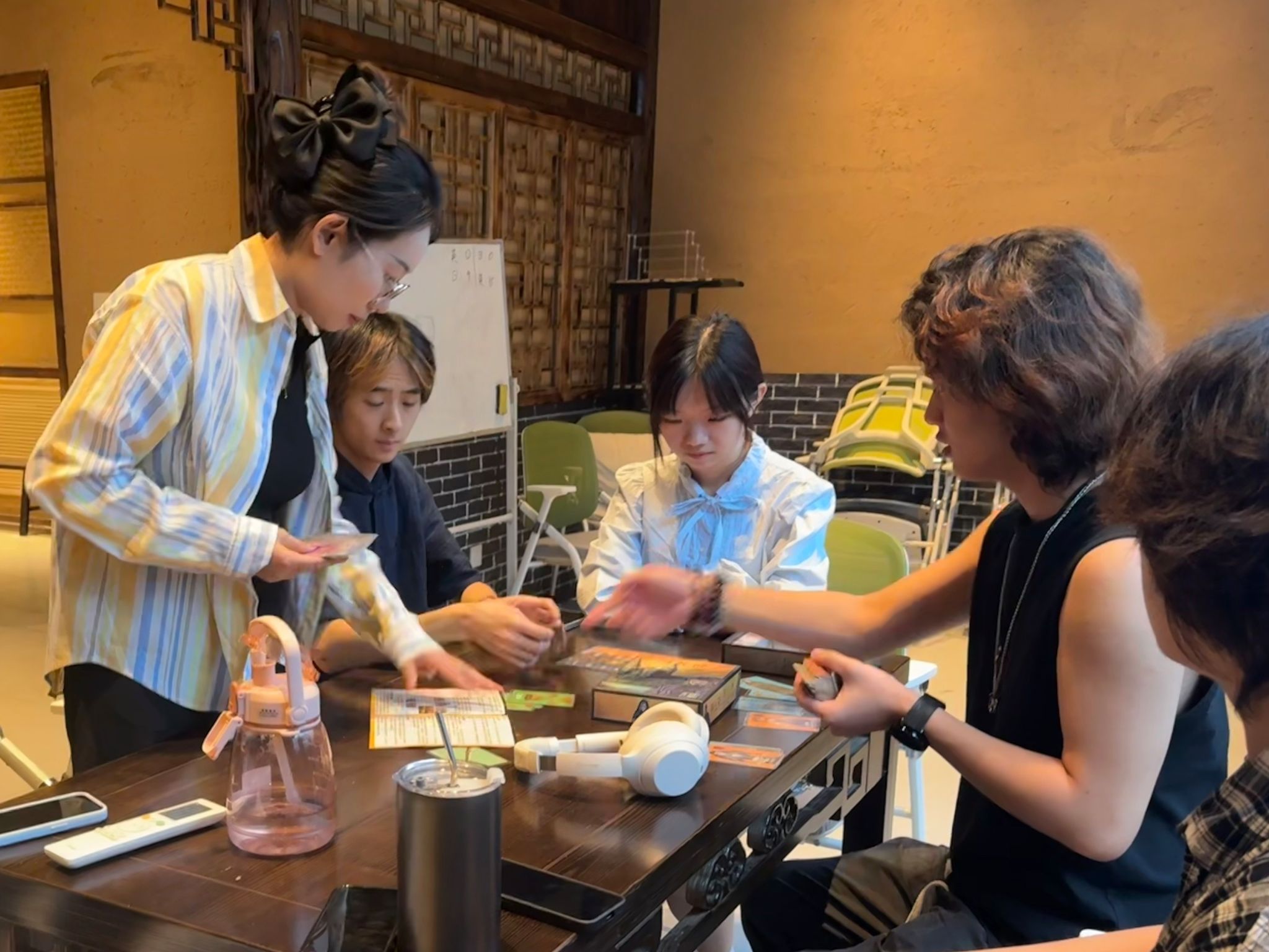 最后,为活跃工坊氛围、增进同学们交流,见面会开展经典卡牌桌游“阿瓦隆”破冰活动。对局一开始,两名"梅林"先后亮明身份引发阵营辩论,真正的派西维尔始终隐匿观察。随后,两次组队任务失败后,大家通过逻辑推演重新调整策略。对局最后,当刺客方误判刺杀对象时,现场爆发出混合着庆幸与懊恼的惊叹声。游戏结束时,同学们自发讨论角色设定与剧本杀设计的关联性。这场融合策略分析与团队协作的破冰,有效促进了跨专业学生的创意交流。