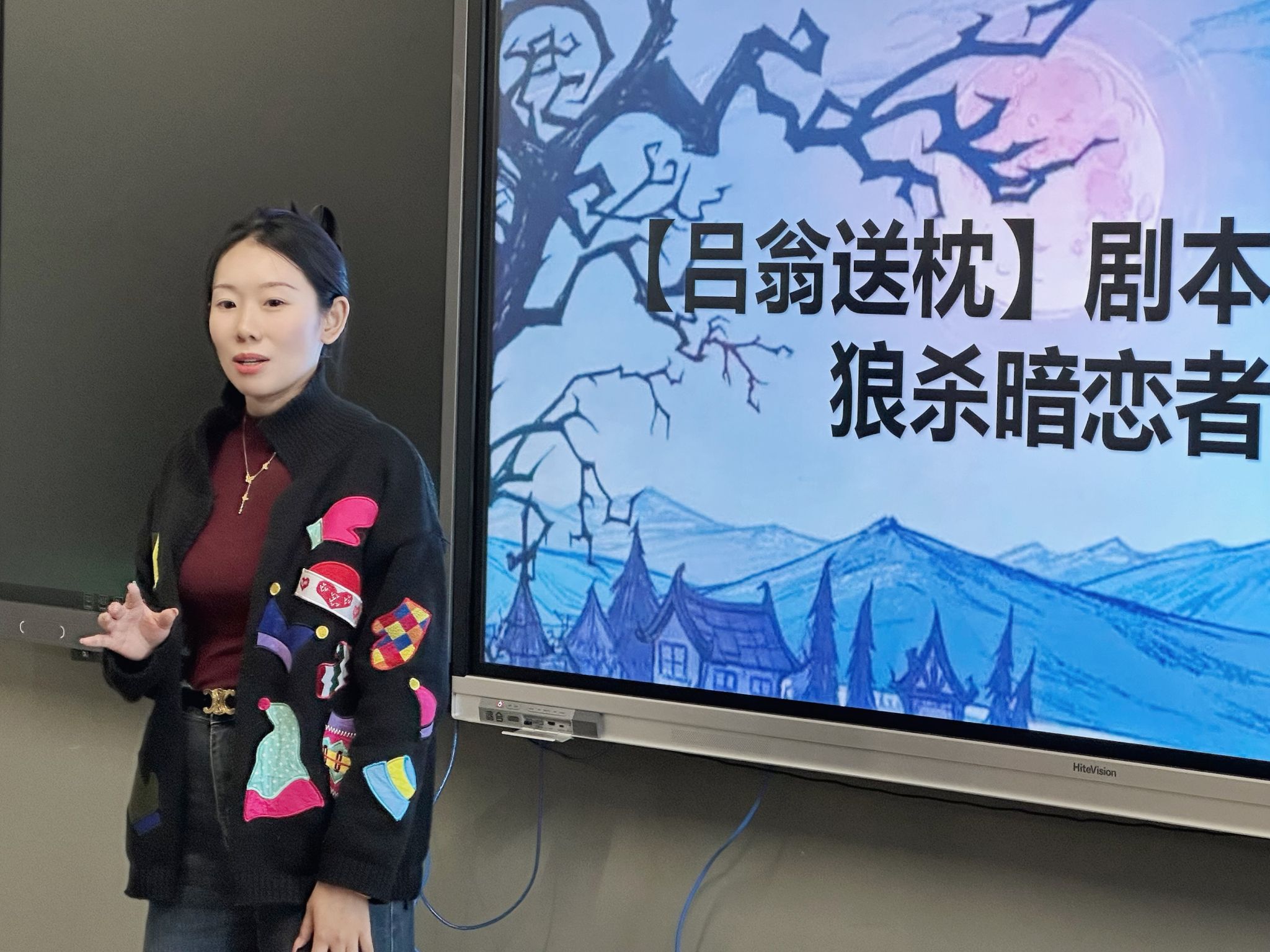 9月24日下午,蓬莱科幻学院(云端剧本杀学院)教师彭悦在无用楼308格列佛乐园成功举办“【吕翁送枕剧本杀】第73期:暗恋者之夜”主题活动。活动邀请学院教师薛瀛、翟秀钰与11名学生共同参与,通过特色暗恋者板型与高能对局展现发言类逻辑推理桌游的独特魅力。
