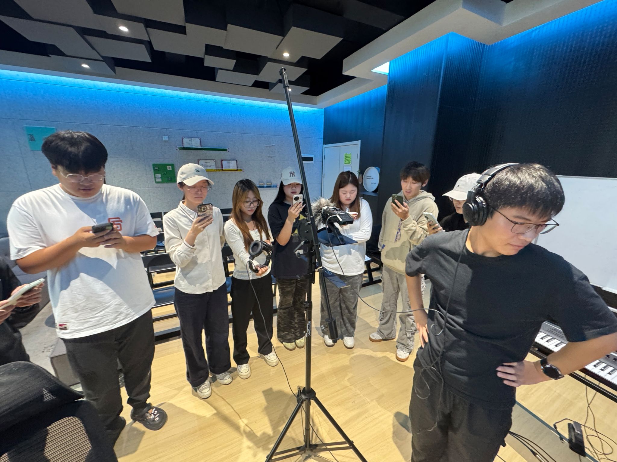 值得一提的是,本学期伊始,未来之声实验室项目工坊继续坚持将技术能力应用于校园服务。“从实践中学习,以技术反哺校园”的理念,工坊成员团队成功完成了三次校内晚会节目录音制作与音频支持任务、原创音乐作品的编曲录音。从录音前期的设备和各项参数调试、现场多轨录音,到后期的混缩制作,团队成员通力协作,确保了声音的优良呈现。