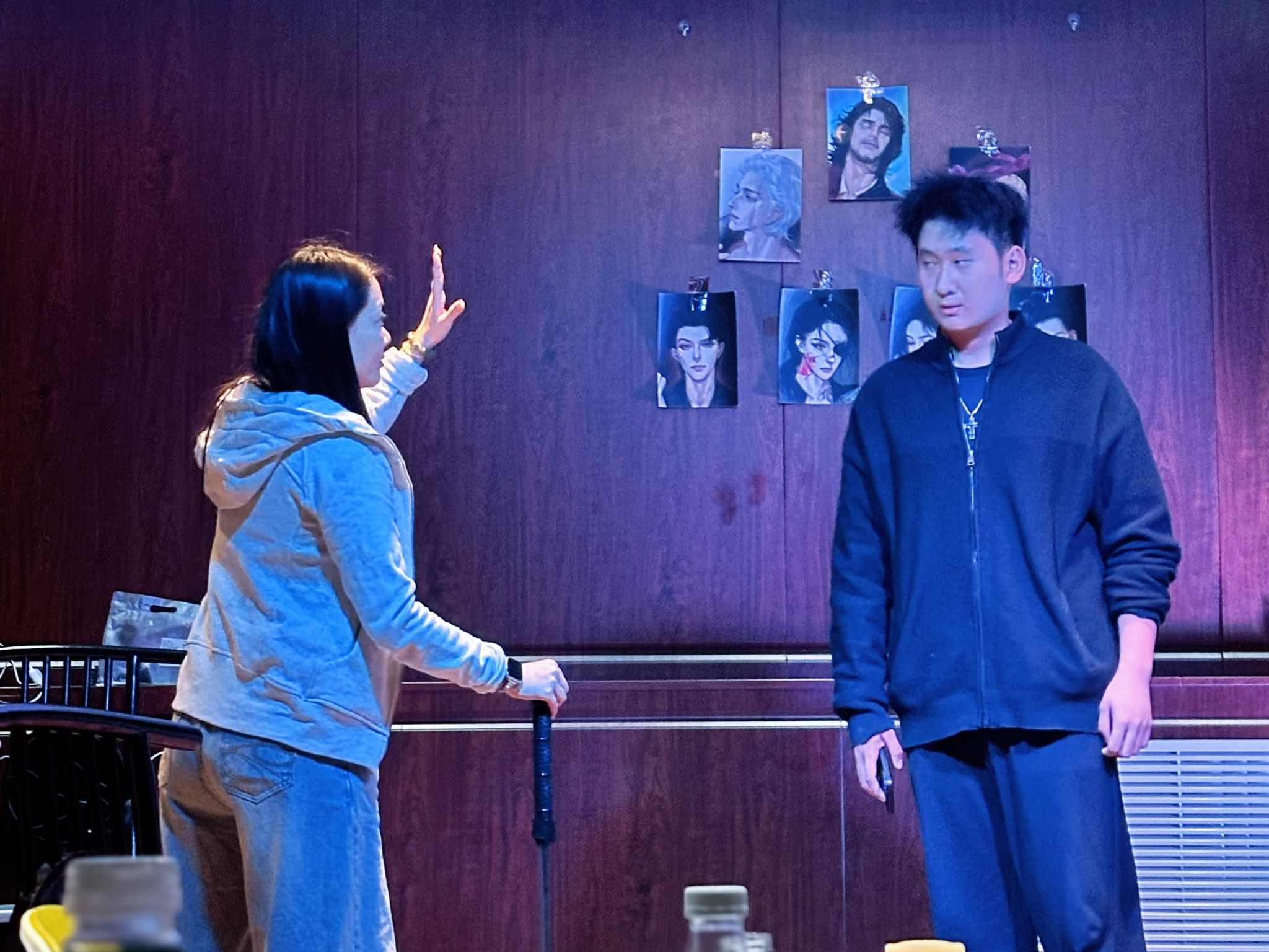 随后的“台词表达”环节将训练推向高潮。孙老师亲自示范如何通过语气停顿、重音处理和节奏变化来增强台词表现力,学生们在反复练习中逐渐掌握了用声音塑造角色的技巧。最令人印象深刻的是“舞台走位”训练,学生们在孙老师的指导下学习如何通过肢体语言和舞台调度来强化戏剧张力,从最初的生涩到逐渐“入戏”,现场学习氛围浓厚而专注。