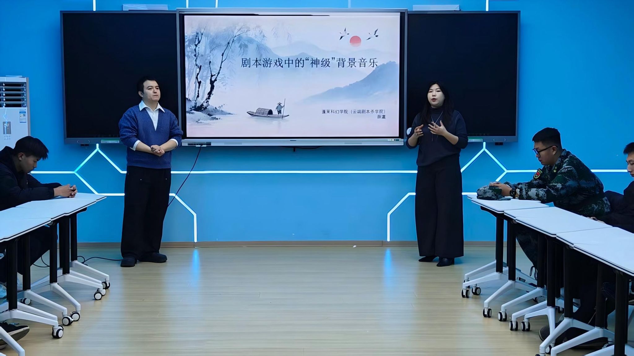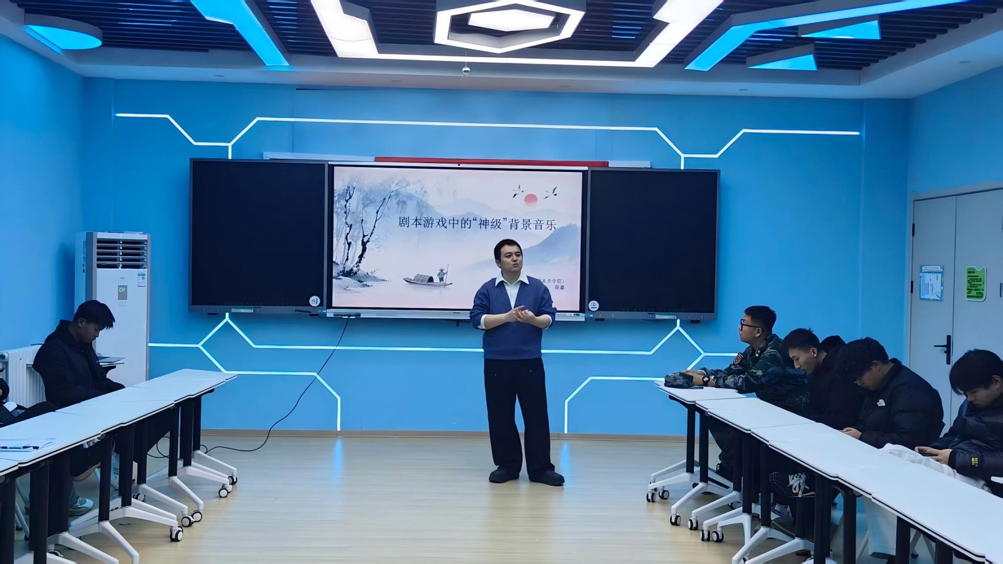 2025年12月17日晚,一场关于剧本游戏背景音乐为主题的讲座在无用楼303展开。本次讲座由蓬莱科幻学院(云端剧本杀学院)教师薛瀛、于嘉荣共同举办,与各位同学一起深入探讨常规聆听与沉浸式聆听音乐之间的区别,并分享这两种聆听方式所带来的不同感官体验与情感共鸣。