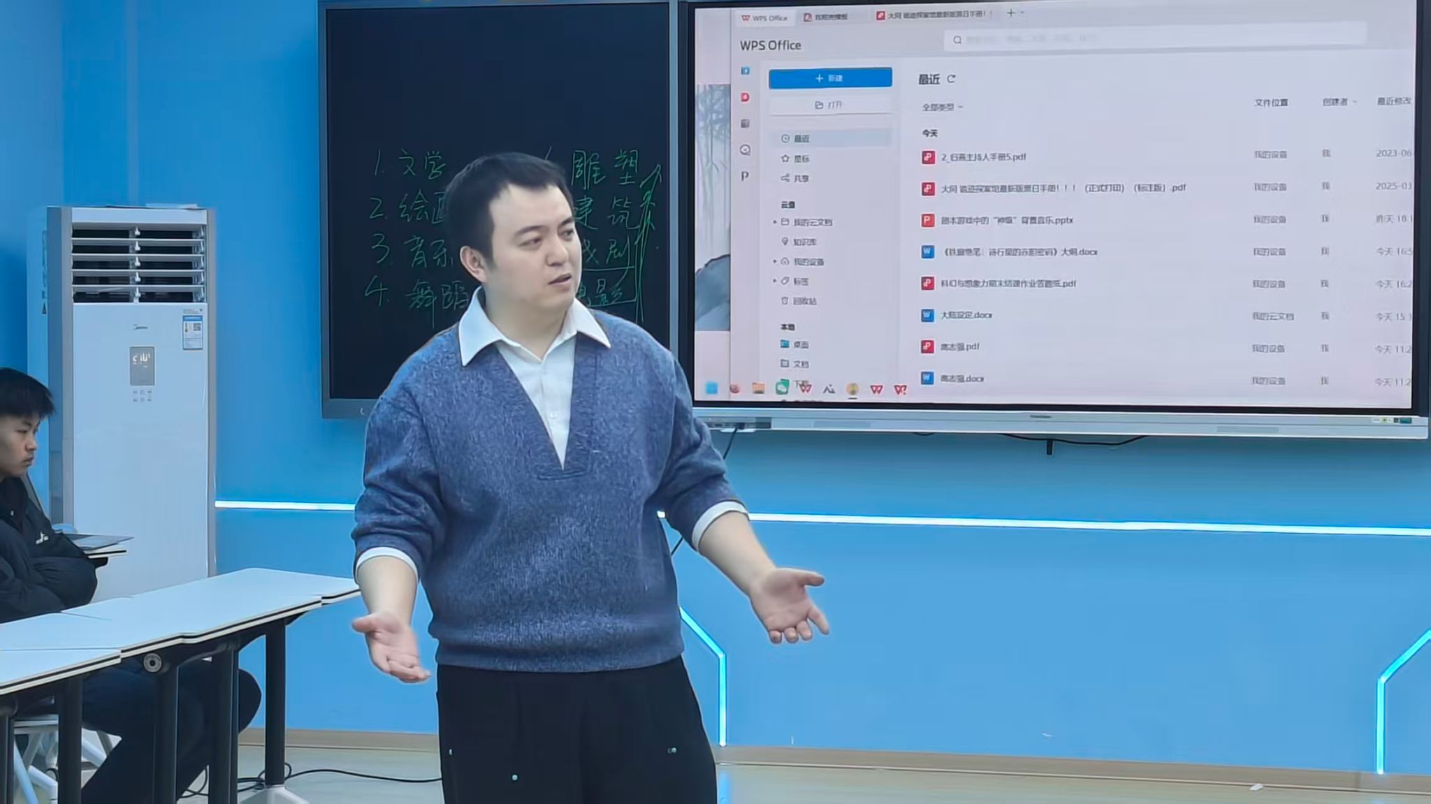 之后薛瀛老师以自己丰富的实践经验作为切入点,他提到自己参与过的剧本的制作经历,从前期的剧情沟通到后期音乐的配合,每一个环节都倾注了大量心血。他引领大家逐步深入到本次讲座的核心内容之中,通过生动的讲述和巧妙的引导,不仅帮助大家理解了艺术的多元分类,还让大家轻松掌握了不同艺术形式之间的内在联系。