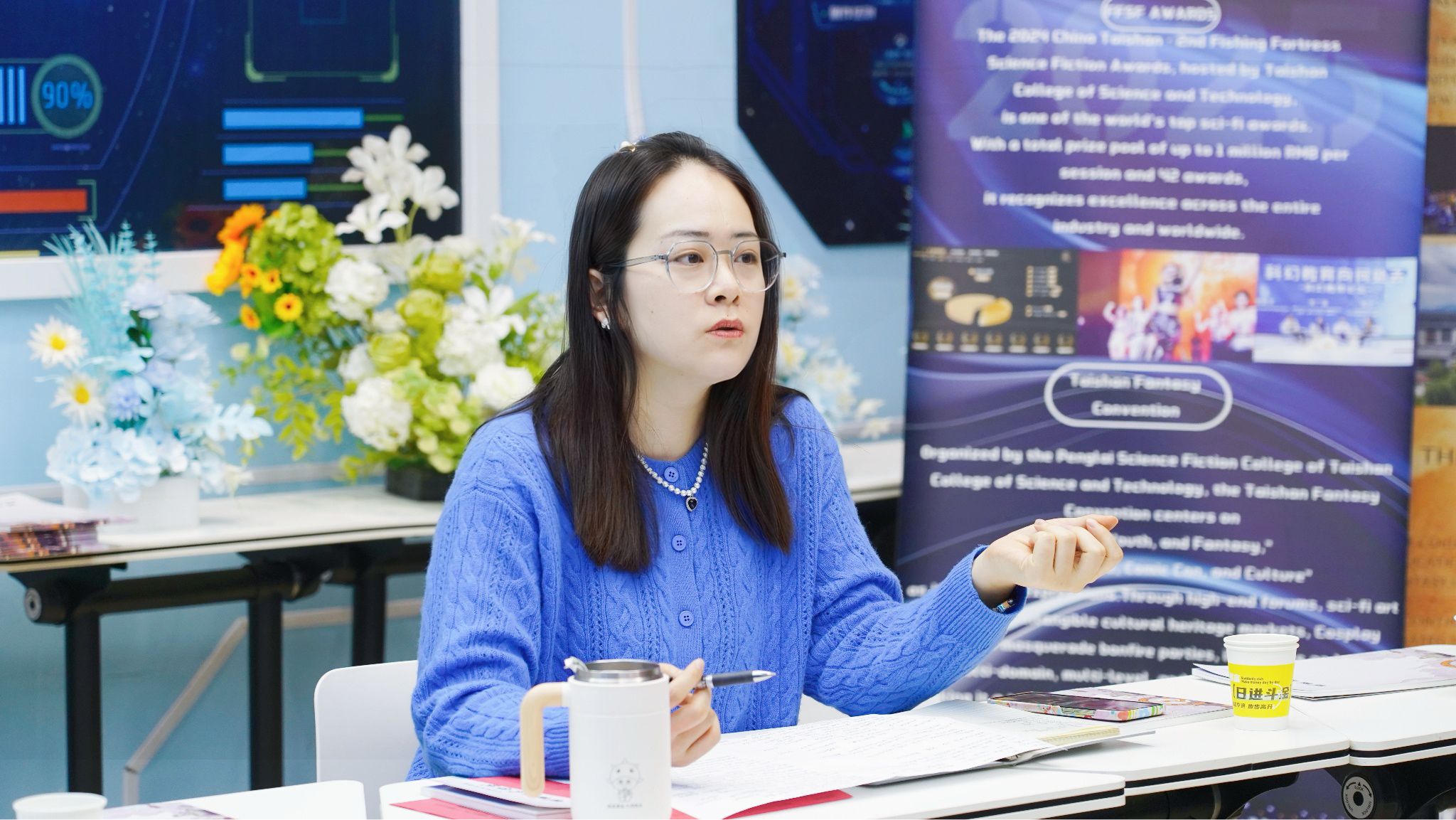 进入会议第二阶段,宋亚洁副院长在听完所有教师的汇报后,为在场的每一位教师分别给予了温暖而务实的总结点评。随后她为大家一学期的辛勤耕耘与亮眼成果点赞,围绕“共同体”理念,细数学院在课程体系化、活动品牌化、项目成果化上的长足进步。同时,她带领全体教师深刻反思教学育人过程中的短板不足,明确提出下学期需在跨学科融合、科研成果转化、学生创新能力培养等方面持续深耕,鼓励全体教师以科幻与专业融合的思维拓宽育人边界,携手打造更具影响力的学院品牌。